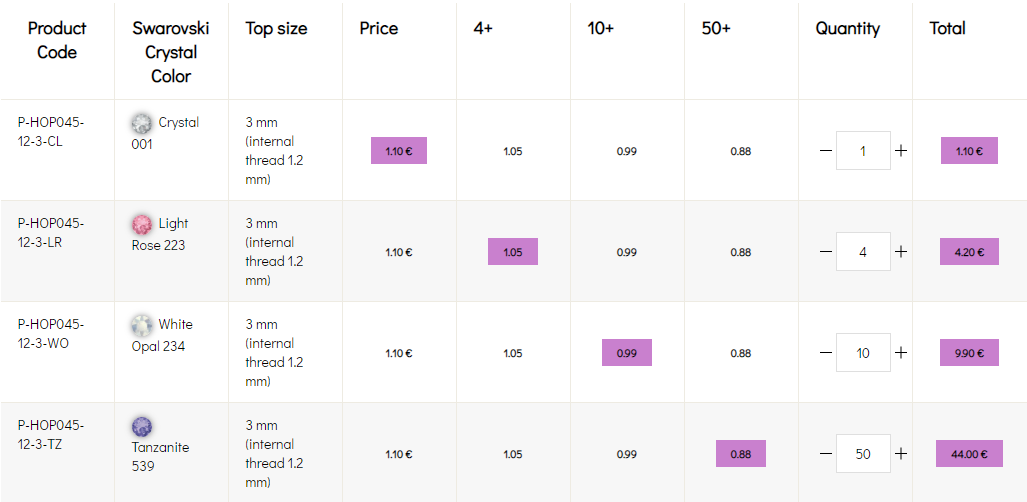 * 20% discount for 50+ pieces is valid only for the main items (labrets, barbels, basic ends, circulars, etc.)