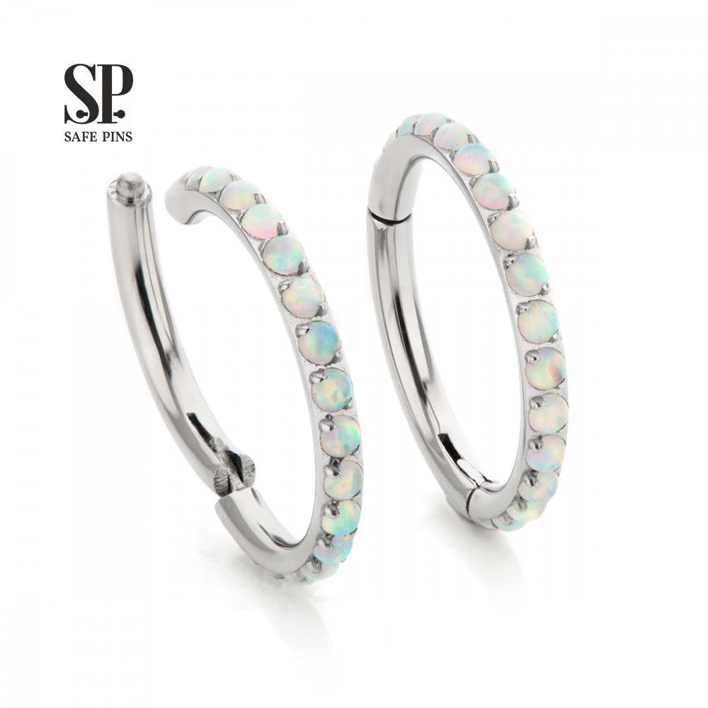 Material: Implant Grade Titanium ASTM F-136 with white opals (OP17)