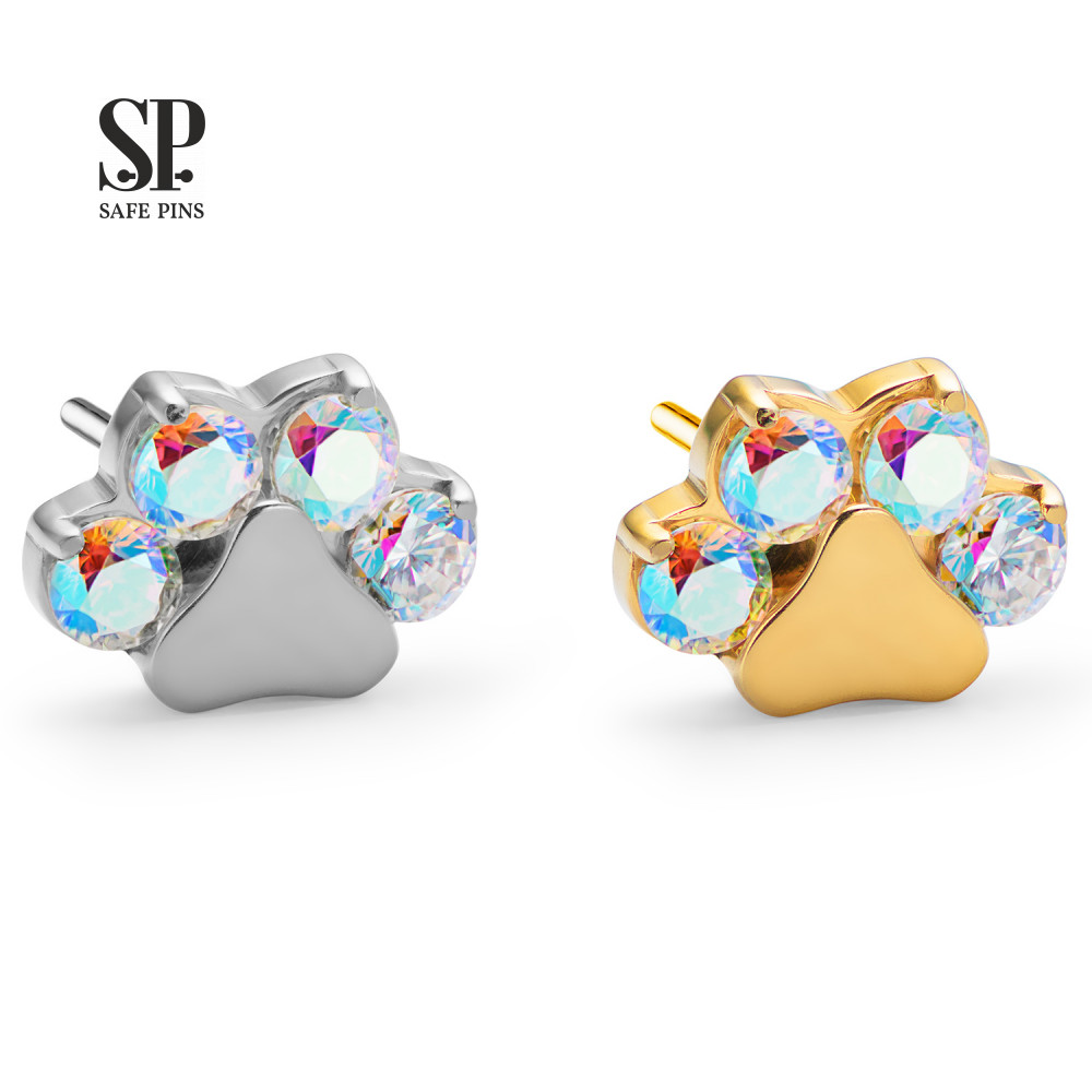 Paw top (Threadless) with AB CZ